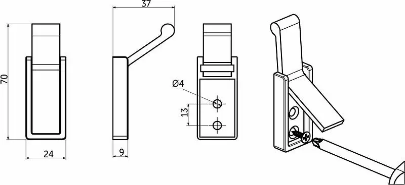Крепится с помощью саморезов, но крепление все равно остается незаметным. В комплекте 2 шурупа 4*22.
