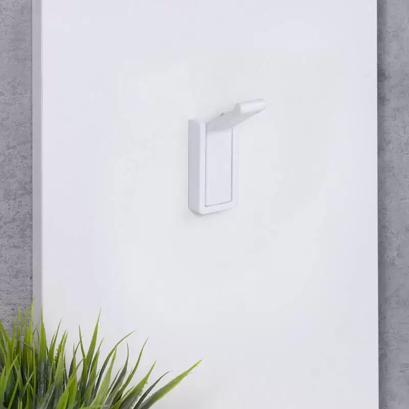 Цвет белый. Материал - цинк-алюминий. Крючок может использоваться как в гардеробных, так и ванной комнате. Крючок имеет стильный минималистичный дизайн, который подойдет практически к любому стилю интерьера.