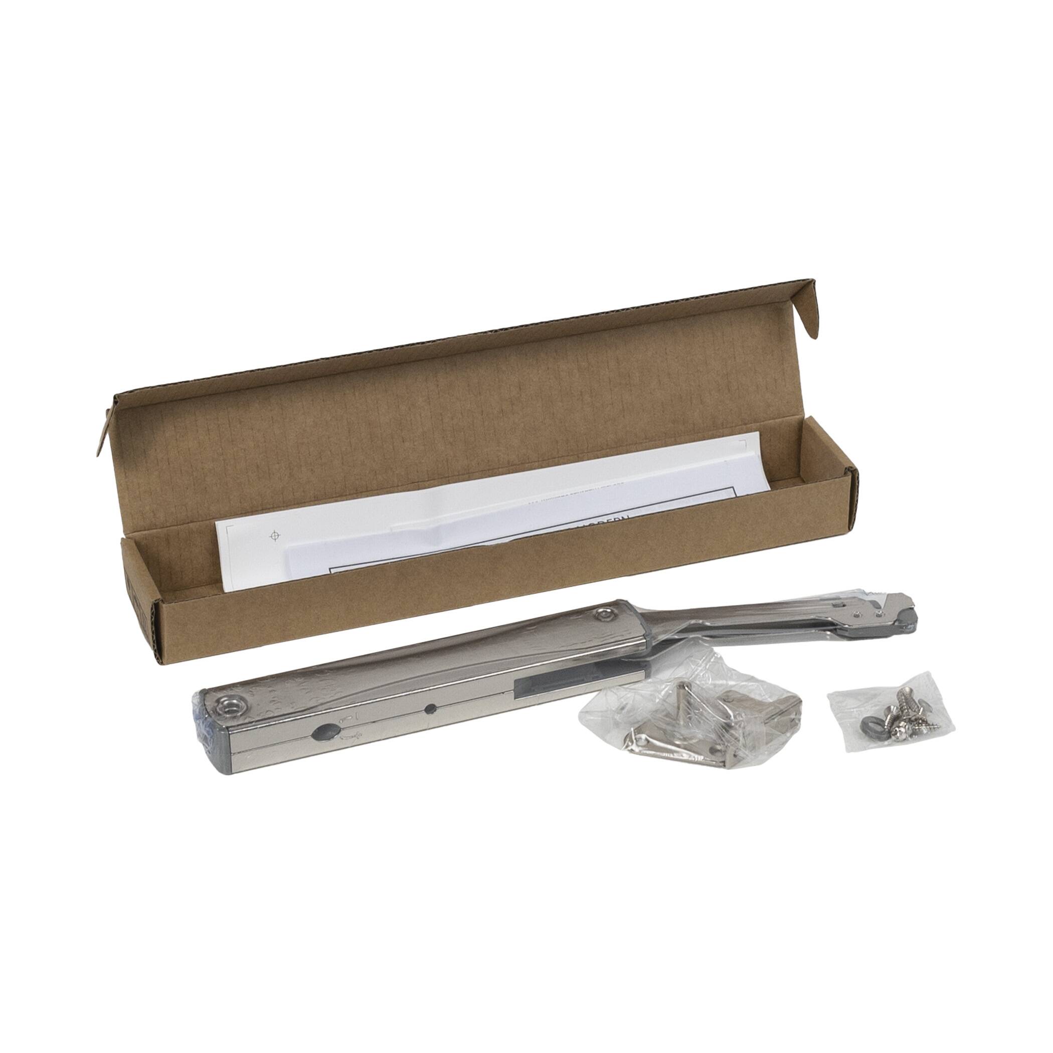 Подъемник KRONOS MODERN предназначен для открытия фасадов вверх и его фиксации в открытом положении. Он идеально подходит для сборки небольших тумб и верхних шкафов кухни, обеспечивая как удобный доступ к их содержимому, так и безопасное использование.