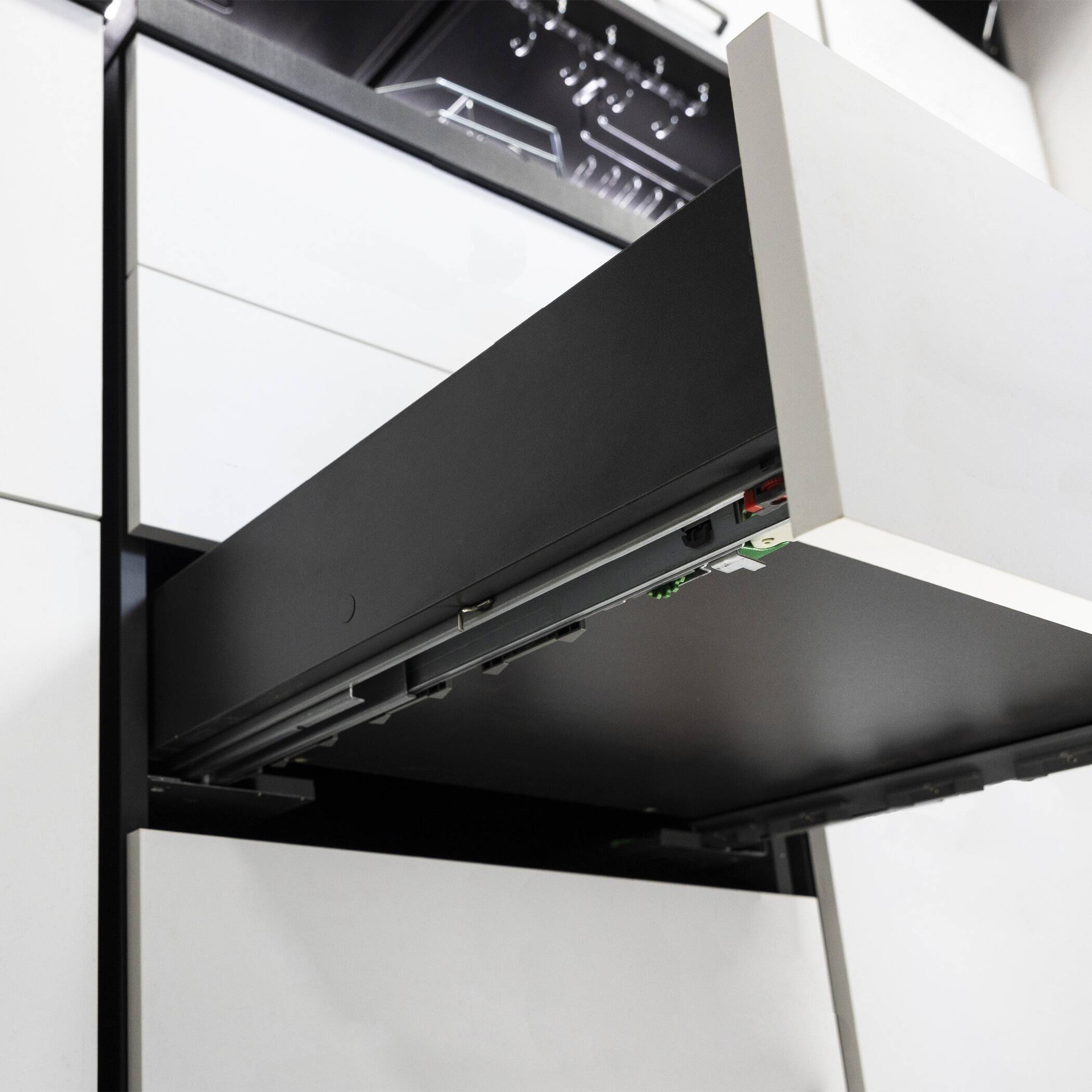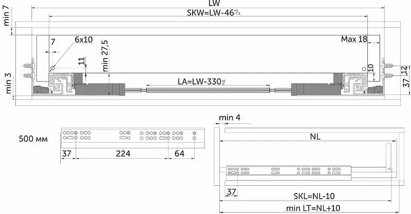 Направляющие предназначены для потайной (под ящиком) установки, совмещает в своём устройстве функционал регулировки в трех плоскостях, а также инновационный механизм PUSH TO OPEN - обеспечивающий открытие от нажатия в любой точке фасада (благодаря синхронизирующей штанге) и доводчика, обеспечивающего плавное и бесшумное закрывание одновременно. Подробнее о товаре по ссылке.