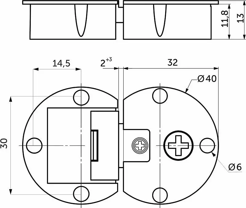 Петля накладная двухчашечная на 35мм. Угол открывания - 90 градусов. Угол в закрытом состоянии – 90 градусов. Регулировка подъема фасада +2 до -1 мм. Для использования с ДСП от 16 до 19мм. Петля разборная на две части, для простоты монтажа фасада на готовое изделие. Материал – сталь.