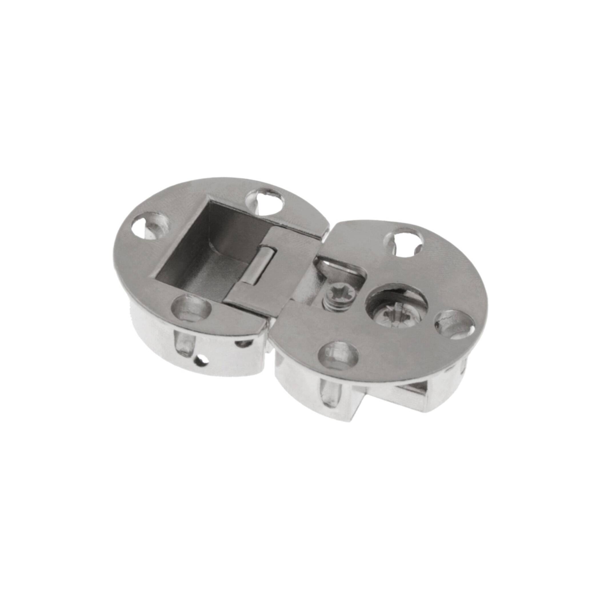 Петля накладная двухчашечная на 35мм. Угол открывания - 90 градусов. Угол в закрытом состоянии – 90 градусов. Регулировка подъема фасада +2 до -1 мм. Для использования с ДСП от 16 до 19мм. Петля разборная на две части, для простоты монтажа фасада на готовое изделие. Материал – сталь.
