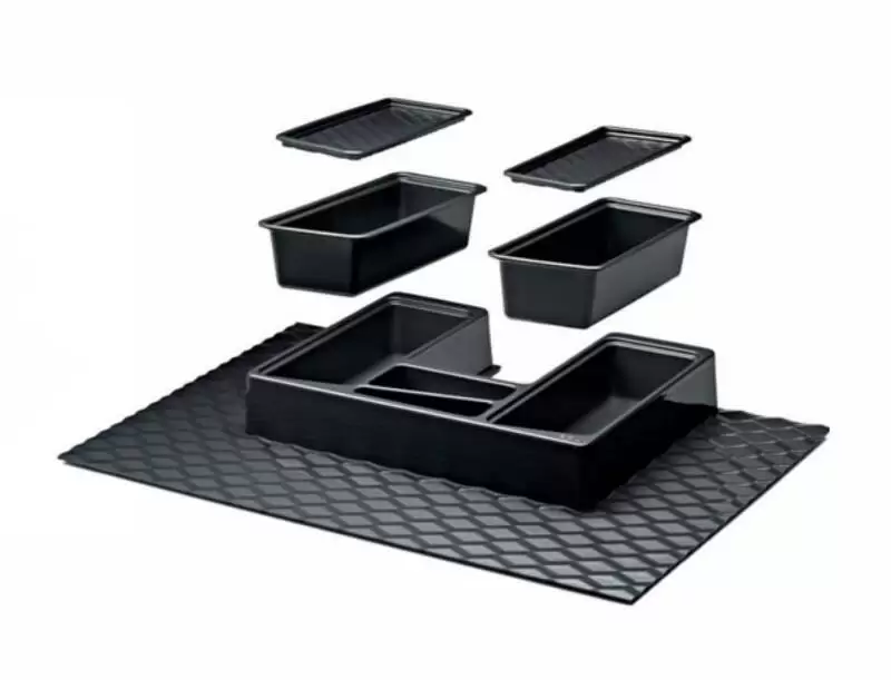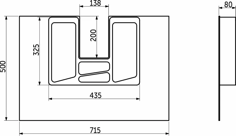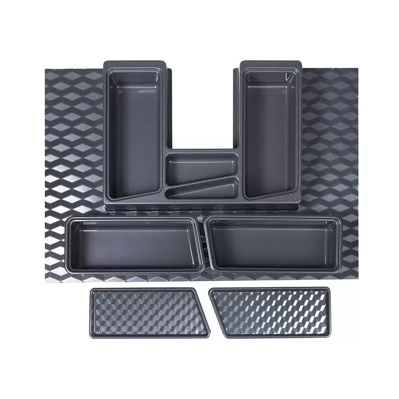 Пластиковый вкладыш в шуфляду под мойку или раковину. Габаритные размеры 500х715, минимальный размер, до которого можно подрезать 325х435. Отличный вариант, чтобы занять место под мойкой, которое обычно искользуется нерационально. С помощью многочисленных лотков и отделений все мелкие вещи будут находится на своем месте и всегда под рукой.