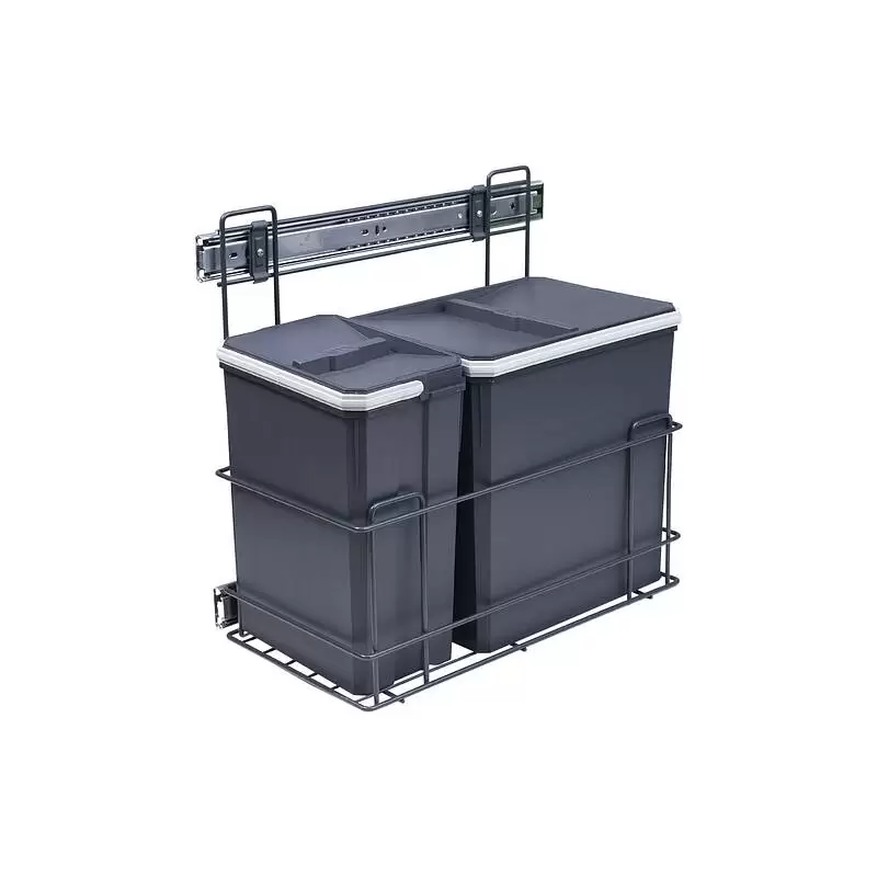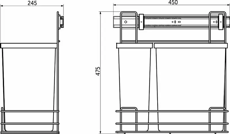 Сегрегатор (разделитель для мусора) бокового крепления. Устанавливается в распашной шкафчик.Может крепиться на левую или на правую сторону. Минимальная ширина ящика 275 мм, также можно устанавливать в более широкий шкафчик. В комплект входят металлическая прутковая корзина- полка, шариковые направляющие и ведра пластиковые с крышкой на 15 и 6 литров.