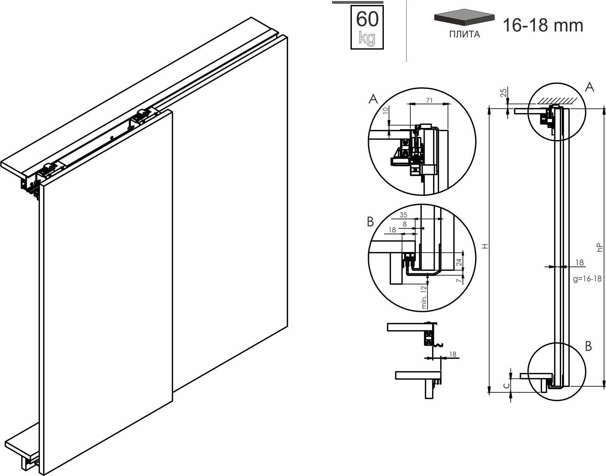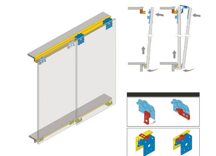 Двери взаимозаменяемые, работают в 2 стороны. Шина верхняя 37362, шина нижняя 37363 приобретаются отдельно.