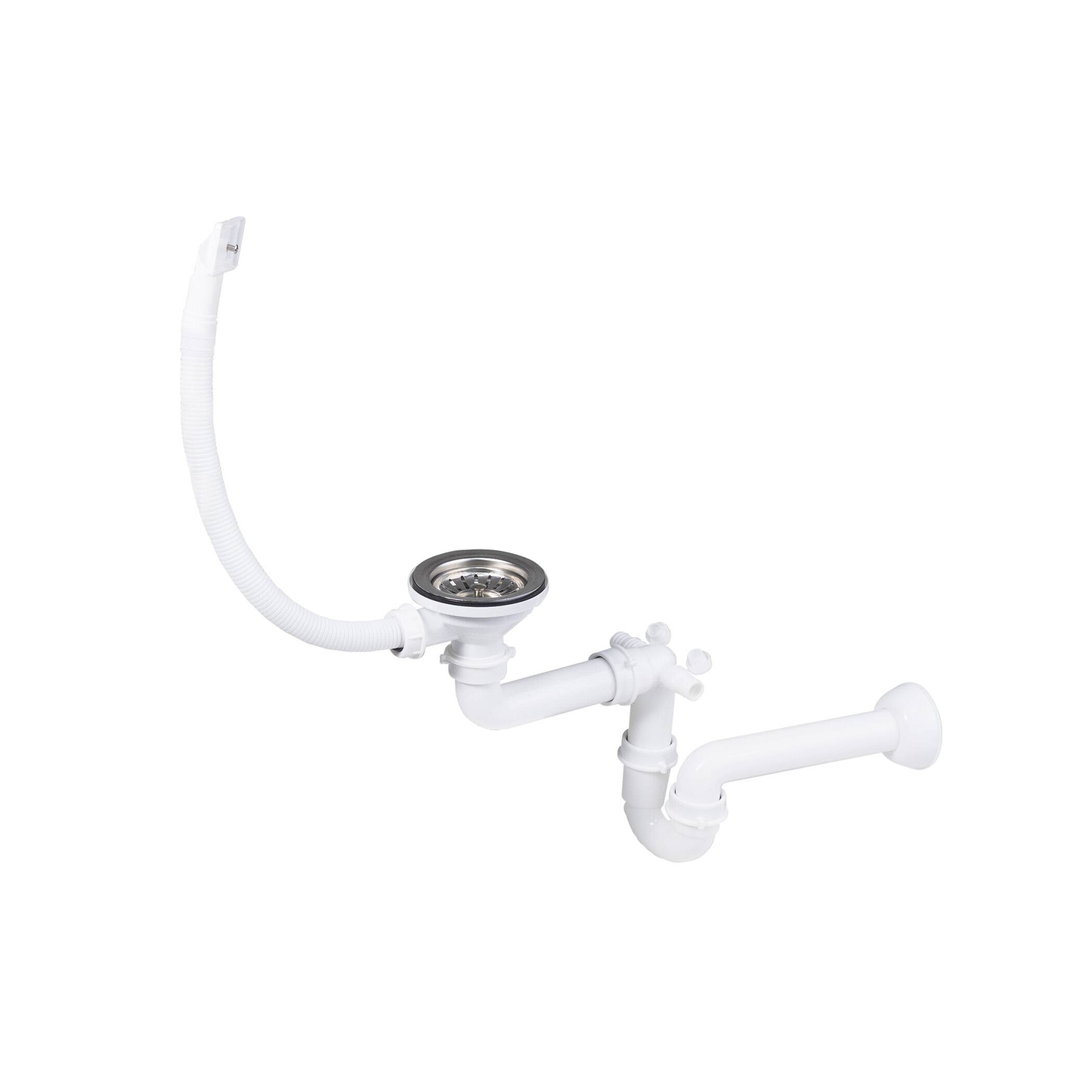 Сифон для кухонной мойки Компакт, прямоугольный верхний перелив, отвод для посудомоечной машины, d110mm. Материал: полипропилен, нержавеющая сталь. В комплекте: сифон, инструкция.