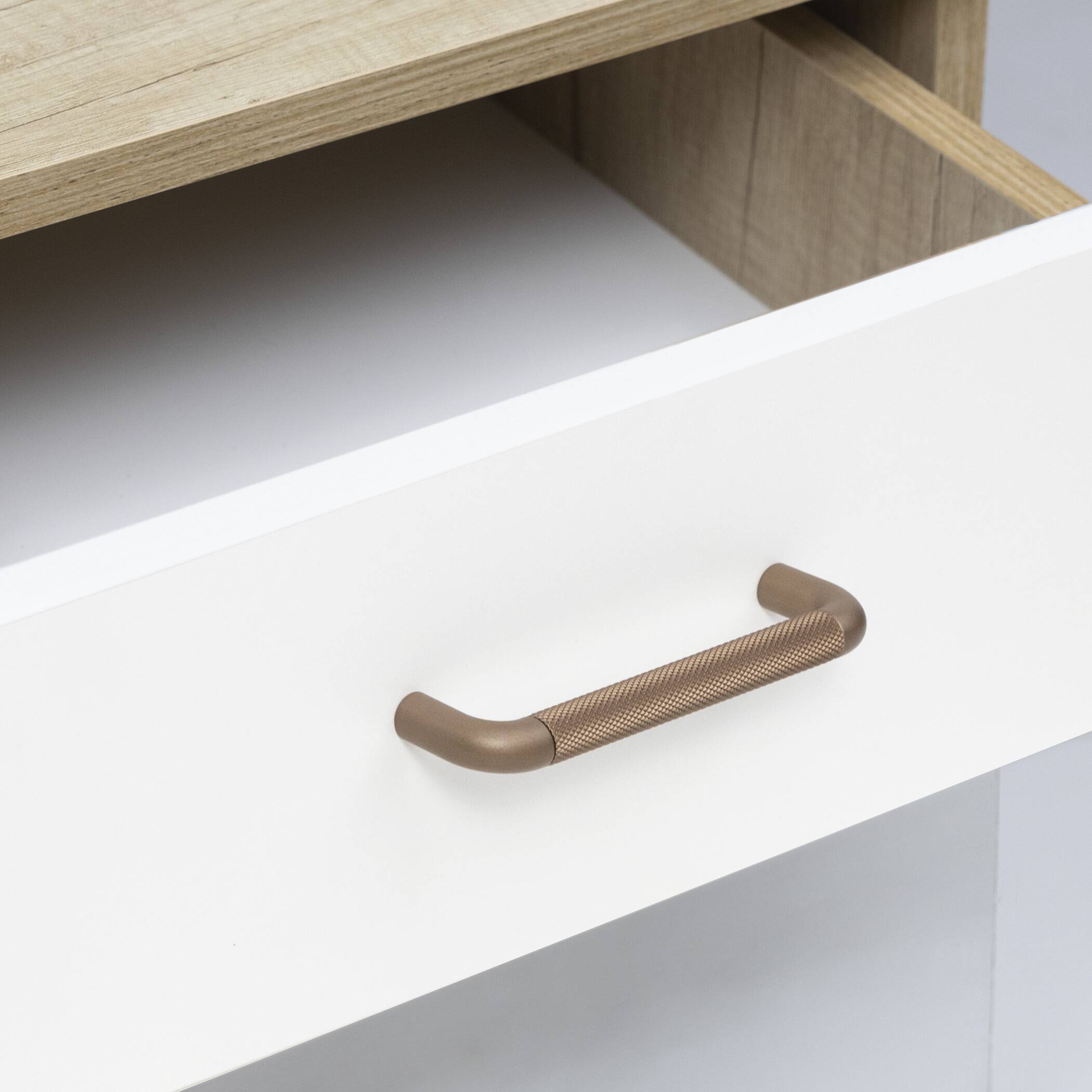 Скоба с приятной на ощупь фигурной фактурой и плавными изгибами. Ручка, которой хочется касаться не только взглядом.