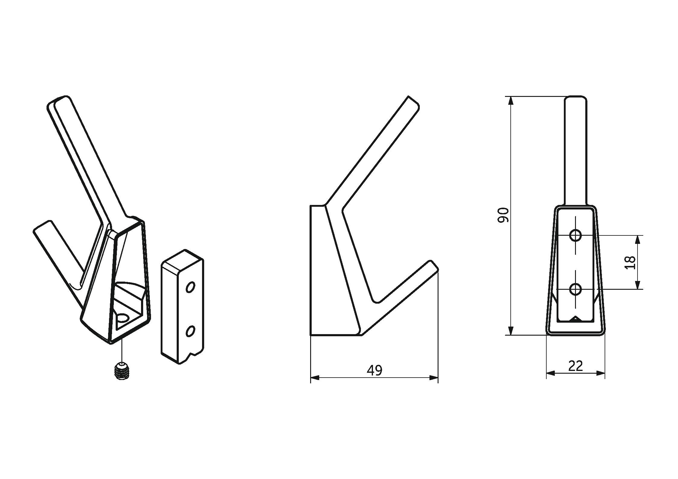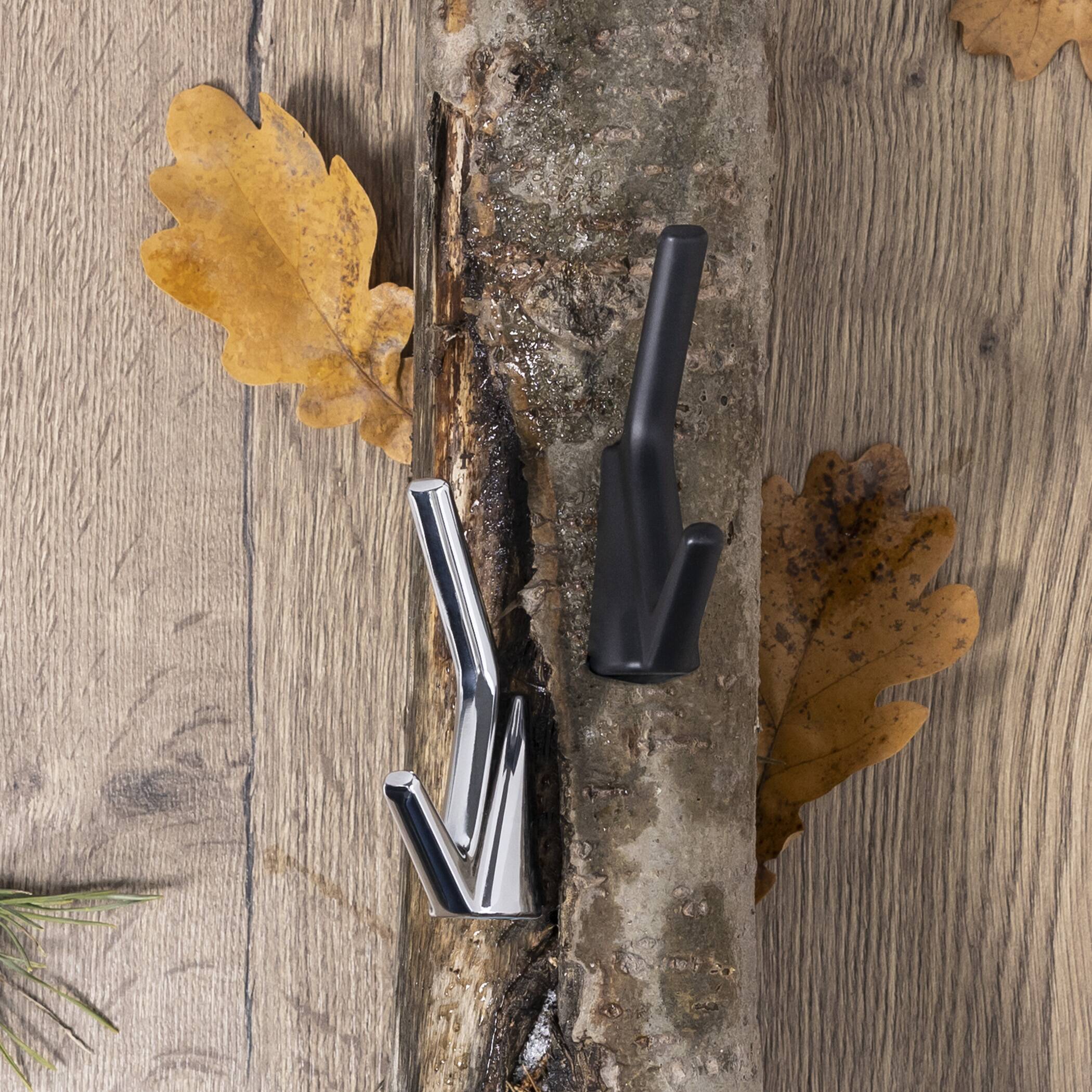 Двухрожковый металлический крючок Sent — это идеальное сочетание практичности и современного дизайна. Элегантный и минималистичный дизайн крючка Sent гармонично впишется в любой интерьер, будь то современный лофт, скандинавский стиль или классическая обстановка. Подходит для использования в ванных и гардеробных комнатах. Материал - цинк-алюминий. Цвет – матовый черный. Крепление к поверхности с помощью планки. В комплекте: дюбель 6х28 - 2 шт, шуруп 4х22 - 2 шт, планка для крепления. Упаковка: Пакет ПЭ запаянный, защитная foam-упаковка, винты в пакете из ПЭ. Высота 90мм, ширина 49мм, длина 22мм, расстояние между отверстиями 20мм, диаметр отверстия 4мм.