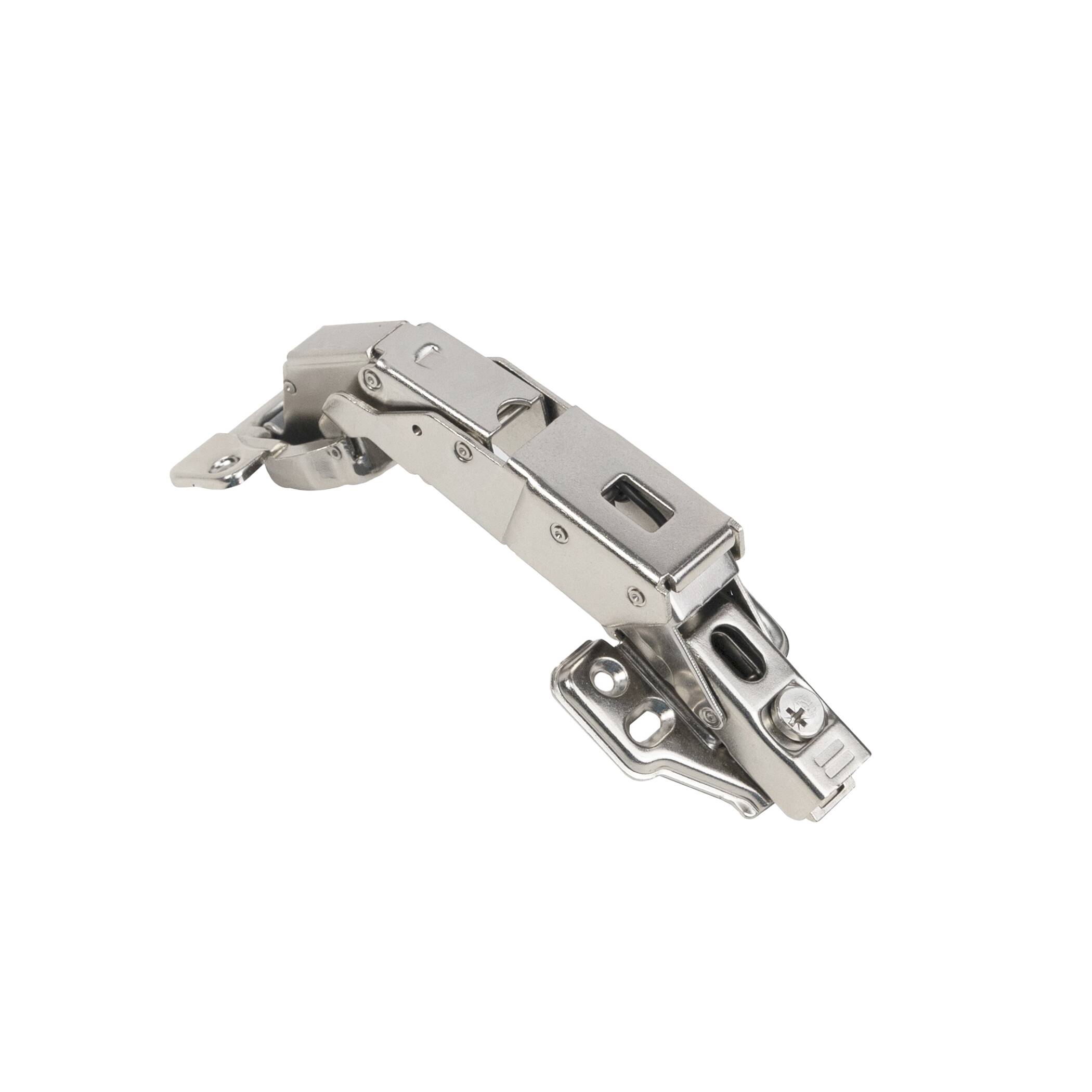Петля угловая с градусом открывания 165, с нулевым вхождением специально предназначена для шкафов с высокими внутренними ящиками и выдвижными полками. Таким образом, ящики выдвигаются не задевая дверцы. Высота ответной планки - 0 мм. Межцентровое расстояние крепления чашки - 45 мм.