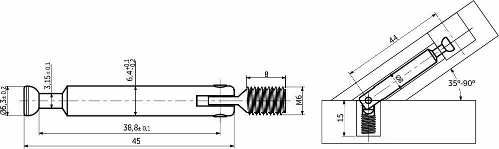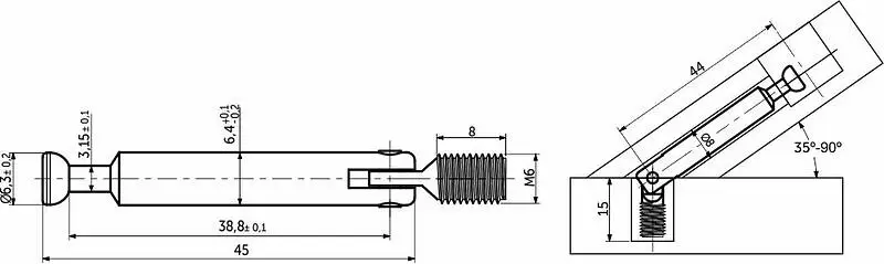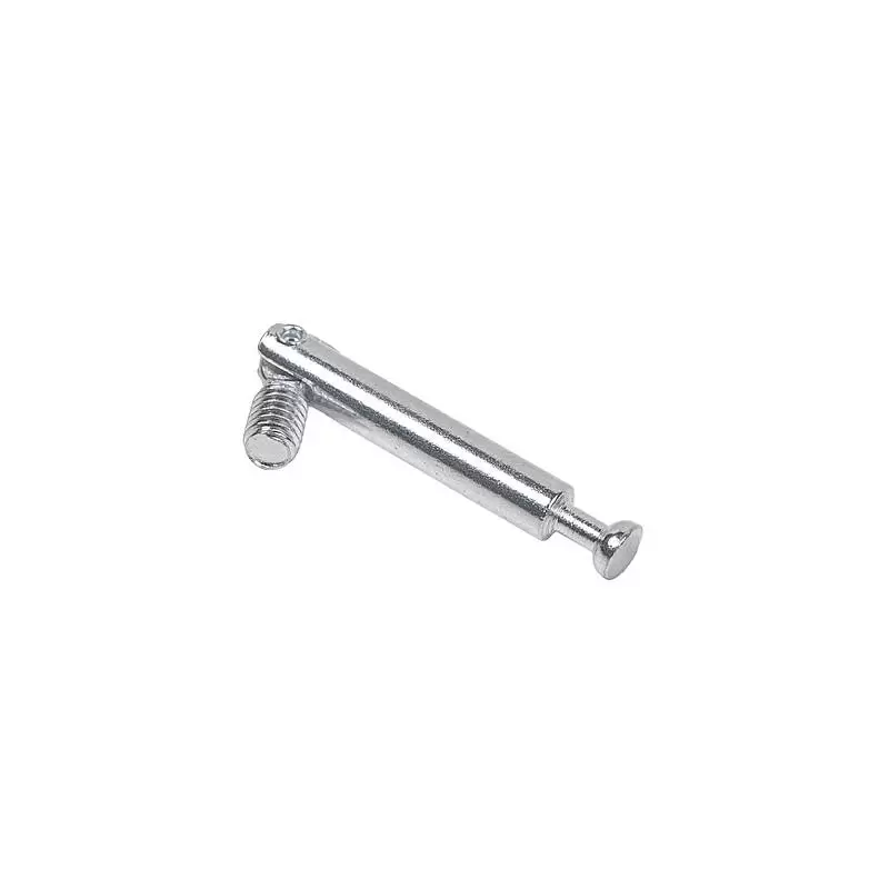 Шарнирные штоки эксцентрика применяются совместно с эксцентриками (бочонками). Данный тип штока дает возможность соединить детали под углом от 30 до 90 градусов. Этот тип крепежа обеспечивает прочное и надежное соединение деталей на разрыв и позволяет многократно выполнять сборку и разборку мебели.