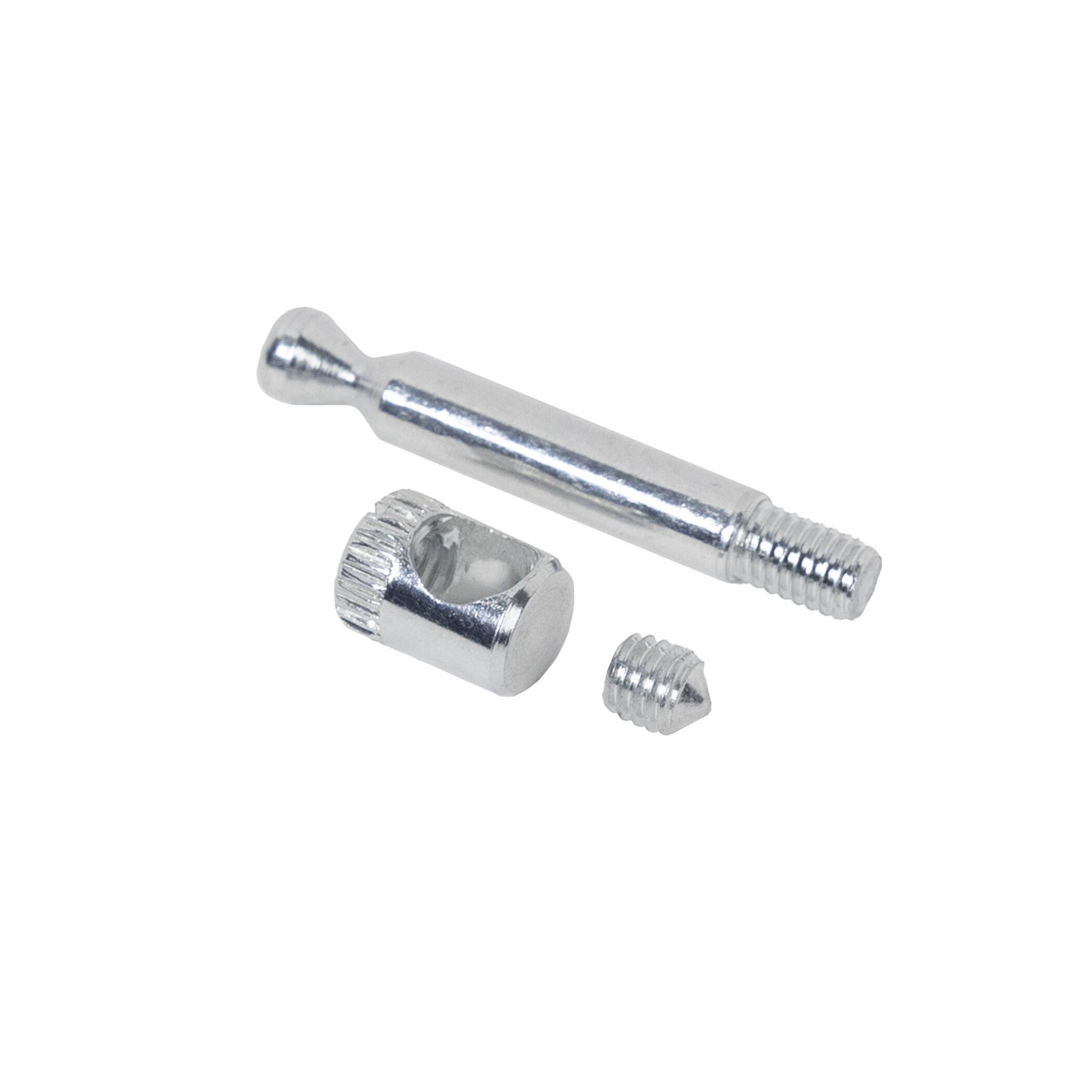 Коническая или конусная стяжка состоит из штока с метрической резьбой на конце для вкручивания в муфту (футорку), бочонка и фиксирующего винта.