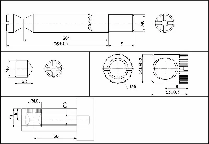 Коническая или конусная стяжка состоит из штока с метрической резьбой на конце для вкручивания в муфту (футорку), бочонка и фиксирующего винта.