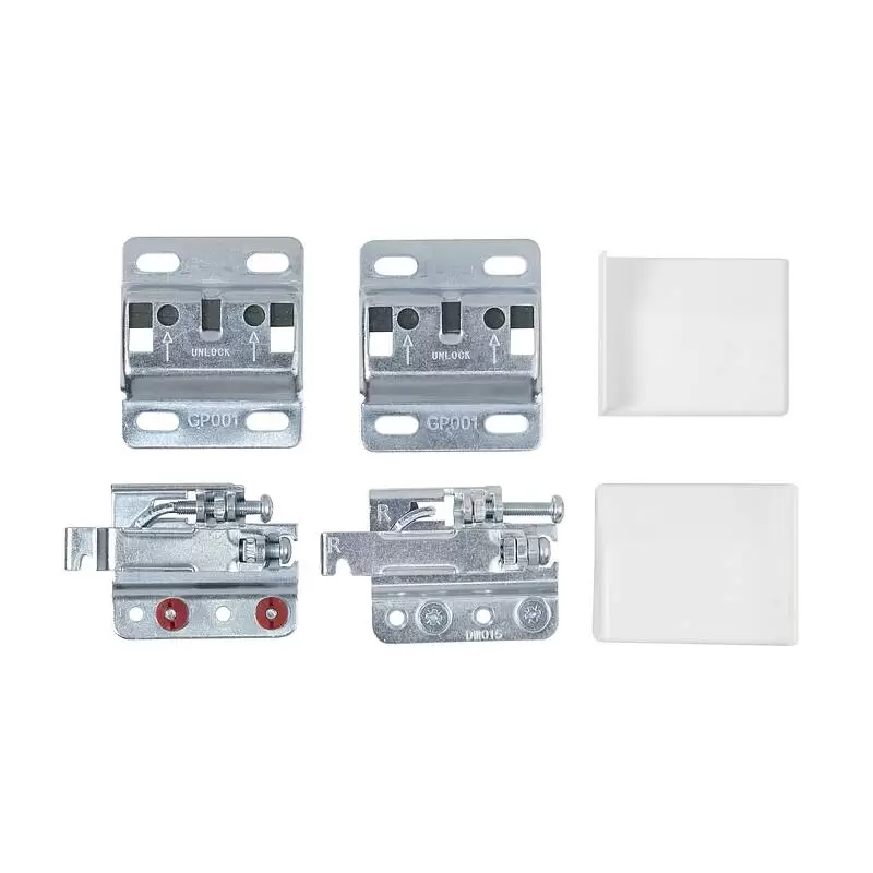 В комплект входят: 2 навеса, 2 монтажные планки, 2 заглушки белого цвета и комплект саморезов для крепления к корпусу ящика.
