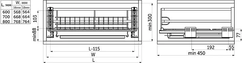 - для фасадов шириной 600 / 700 / 800 мм, рекомендованная высота фасада до 400 мм.