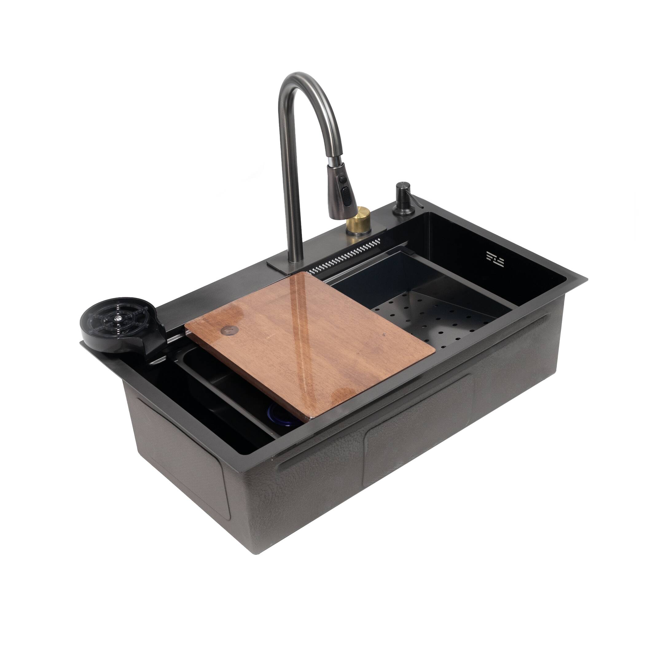 - в комплекте: мойка, смеситель с "водопадом", ринзер, коландер 2 шт, разделочная доска, сифон, крепления, дозатор для мыла;