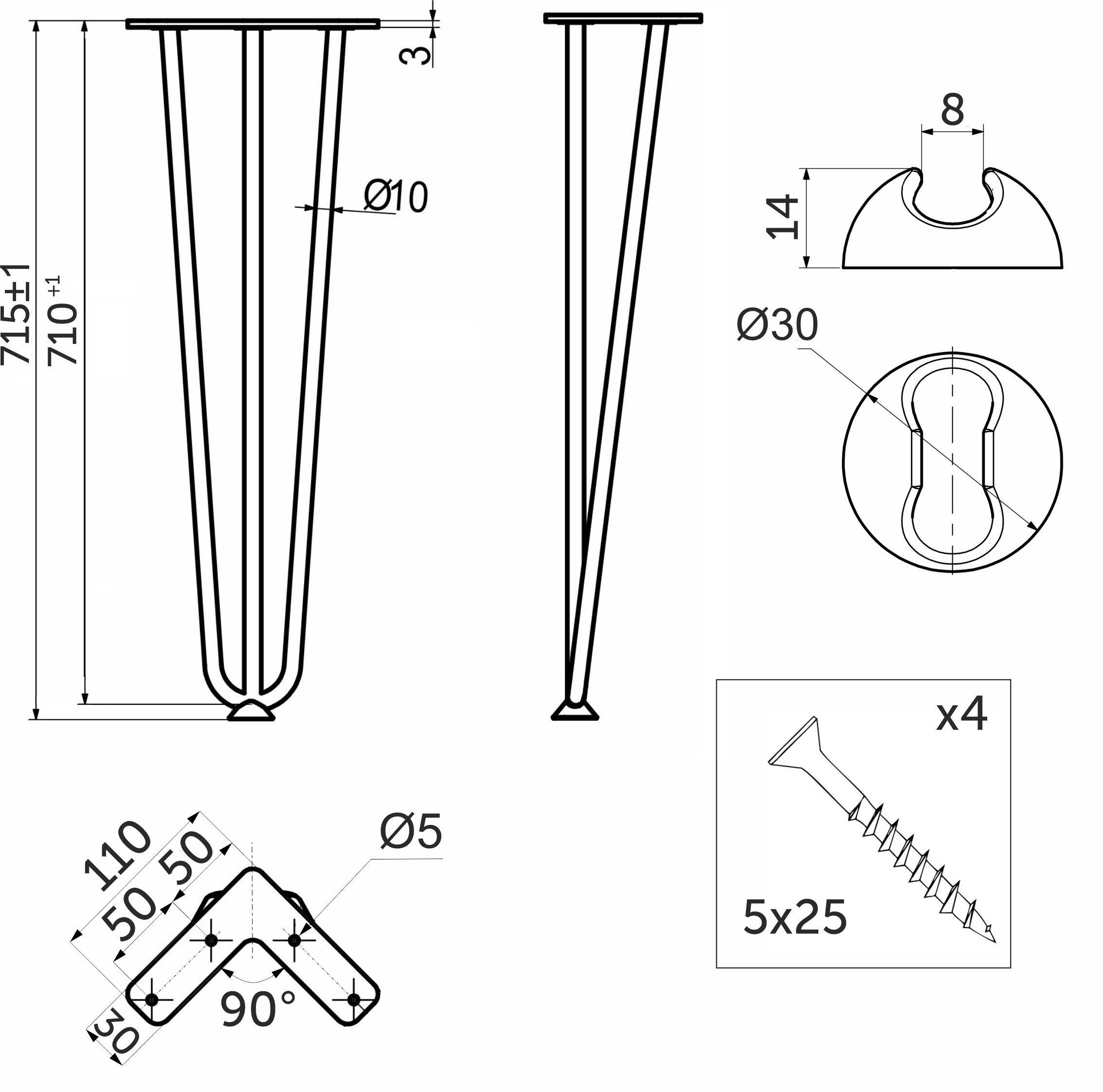 Стильная опора для столов FLASH изготовлена из пруткового металла d10 мм. Материал - сталь. Подпятник съемный, нерегулируемый.