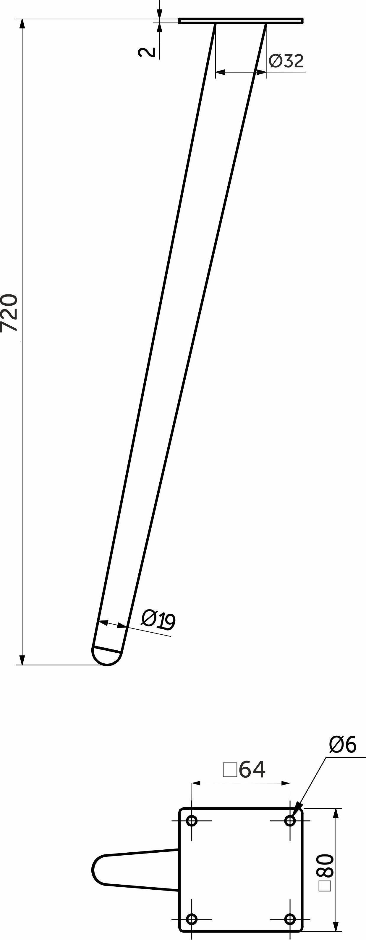 Опора металлическая наклонная для столов. Рекомендованная нагрузка на 4 опоры 125 кг. Высота опоры 720мм, размер площадки для крепления к столешнице 80мм*80мм.