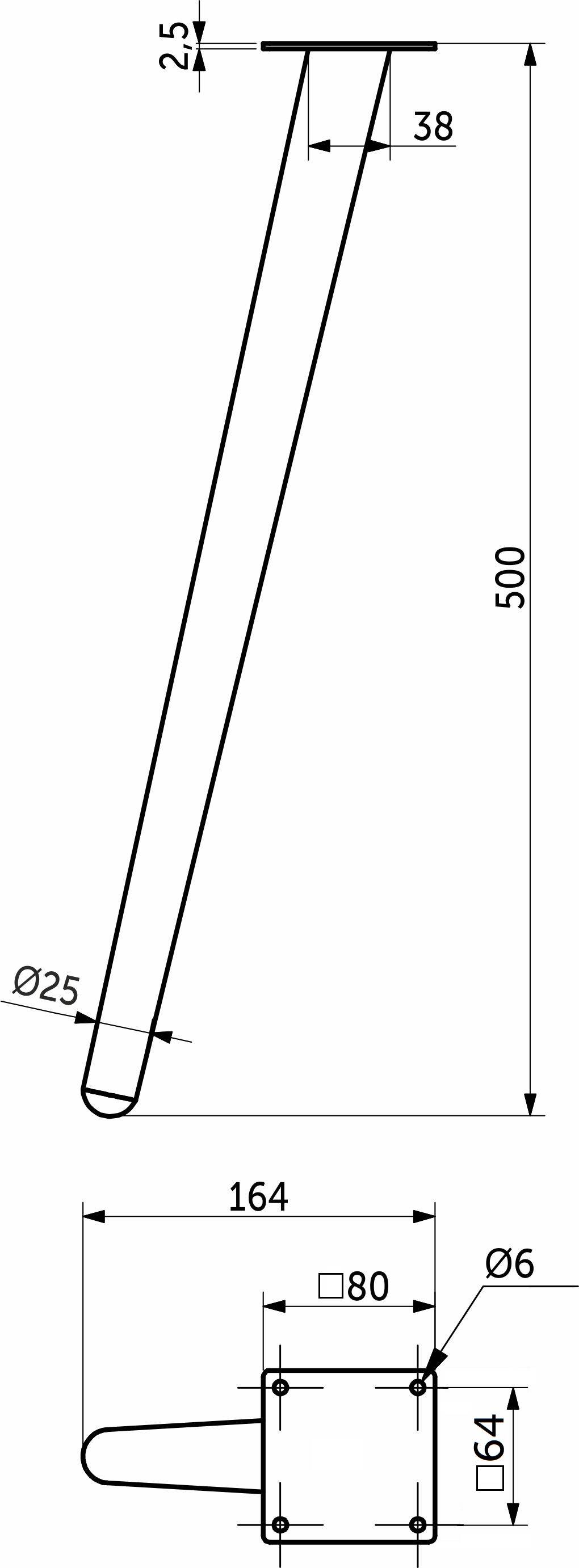 Опора металлическая наклонная для столов. Рекомендованная нагрузка на 4 опоры 125 кг. Высота опоры 500мм, размер площадки для крепления к столешнице 80мм*80мм.