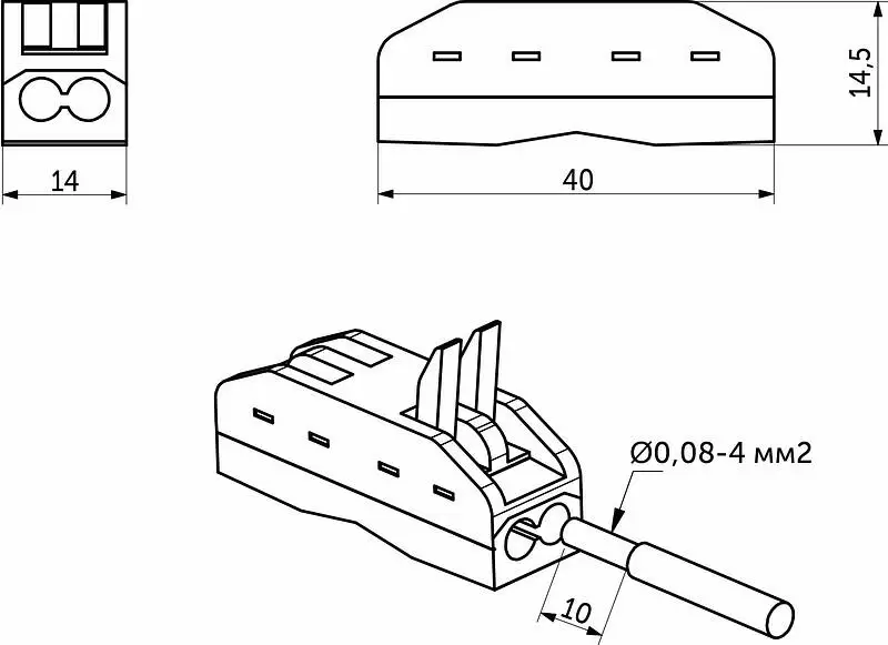 Соединитель клеммный PCT-222, быстрозажимной, проходной, 0.08-4мм2, 32 А, 250 В, для любого типа провода.