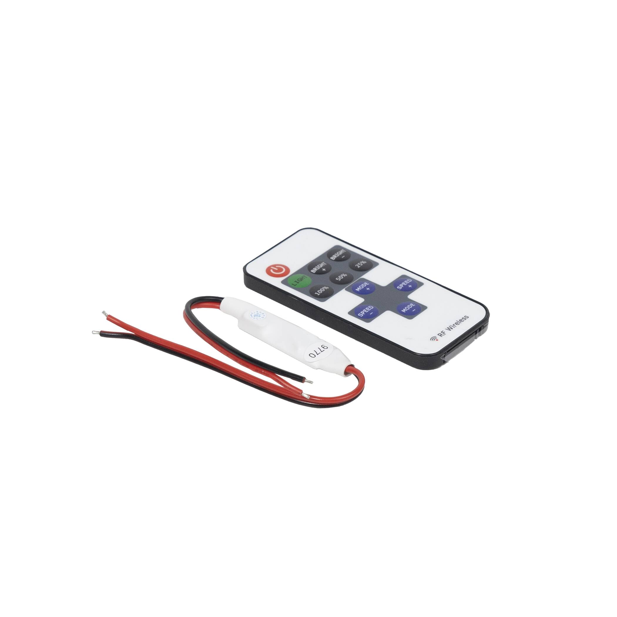 Пульт позволяет контролировать уровень яркости освещения LED при помощи пульта. Напряжение 12-24В, мощность до 48/96Вт, степень защиты IP20, максимальное расстояние действие пульта до контроллера 30м, батарейка в комплекте