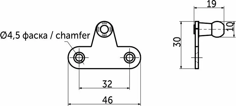 Крепление наконечника газлифта для тонкого алюминиевого профиля. Подходит для газлифтов AKS и AKS PLUS без доводчика.
