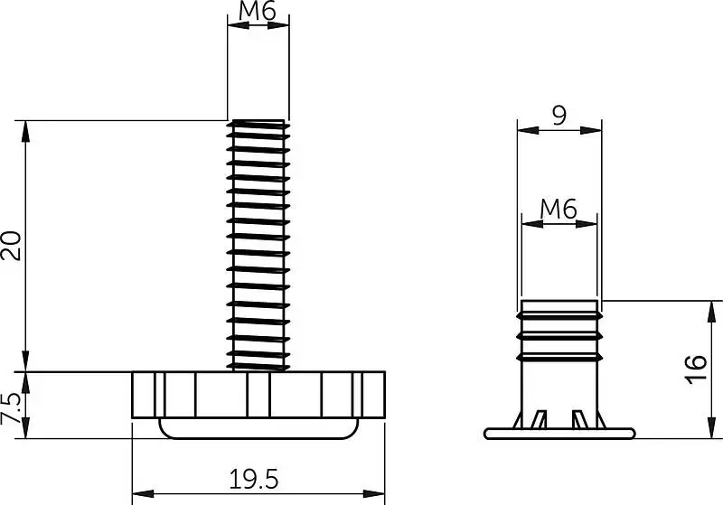 Регулятор уровня+муфта М6 черный (1 упак. = 100 компл.) AKS