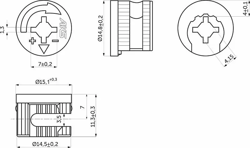 Выполнен из оцинкованной стали и рассчитан для плит толщиной от 16 мм. В тандеме со штоком создаёт очень прочное крепление деталей. Стальной эксцентрик имеет вес 7,0-7,1 грамма и тяжелее стандартного эксцентрика из цинка в 2 раза, что в совокупности с измененной геометрией самого эксцентрика приводит к деформации только при усилии на скручивание от 12,0-14,5 N.m. (стандартный цинковый эксцентрик, например, рассчитан на усилие всего в 6,0-8,0 N.m.).