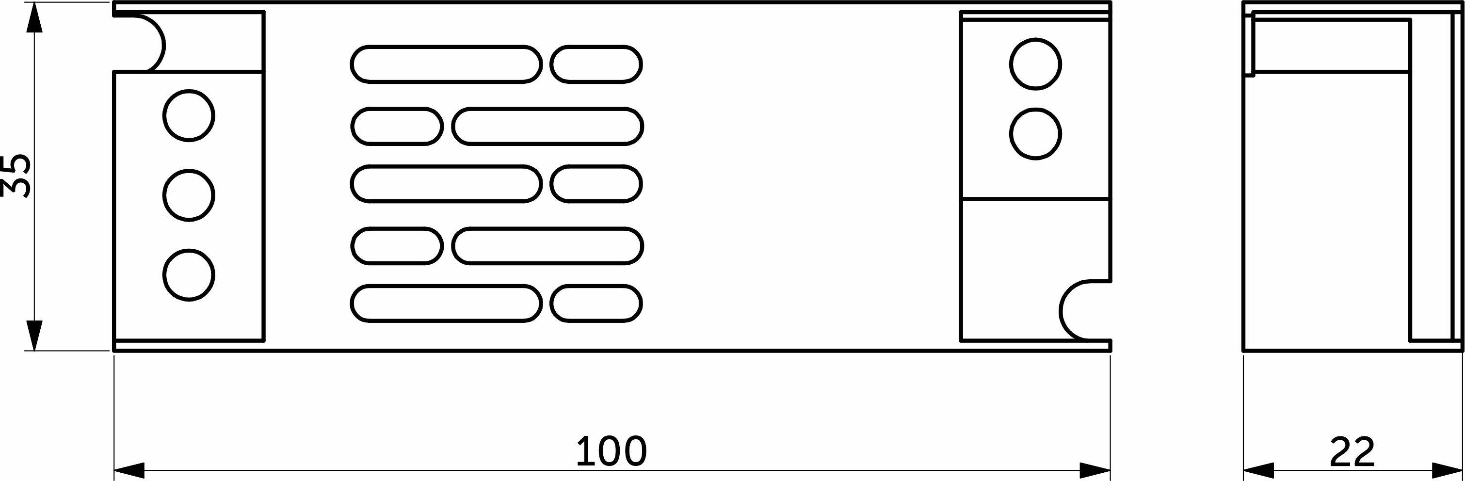 Размеры 100х35х22 мм, Вх.напряж. 176-264V AC, вых напряж. 12V DC, мощность 36Вт, сила тока 2,5A, степень защиты IP20. Более компактный, чем обычный Indoor. Фактическая мощность 80%.