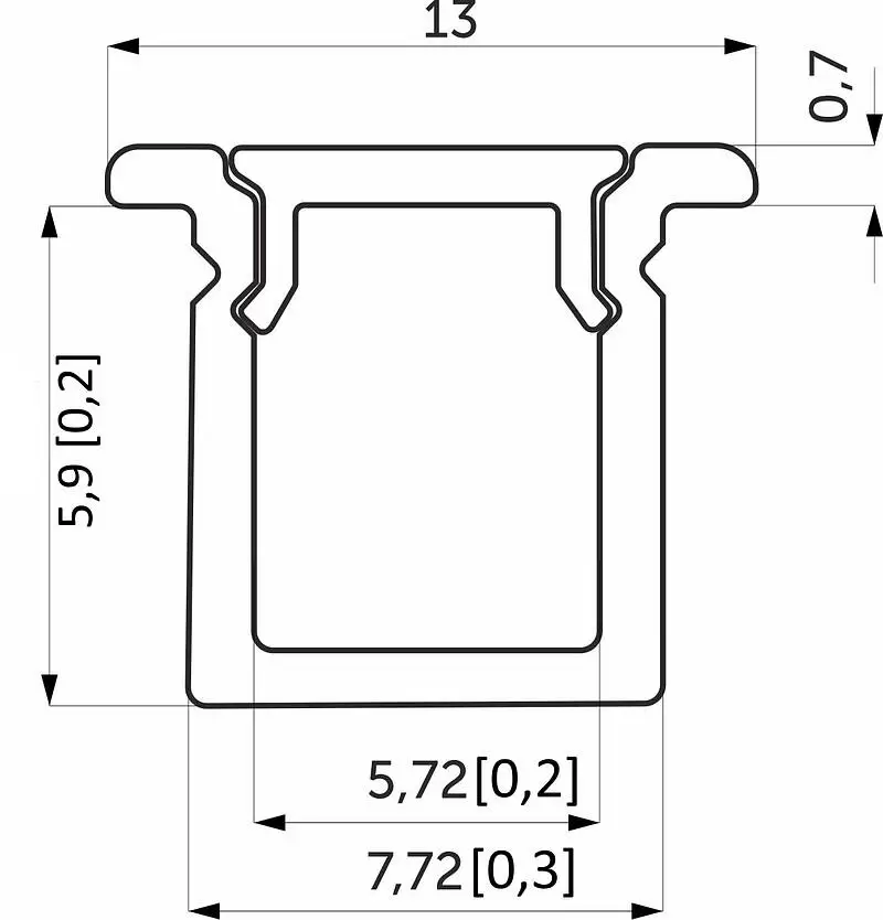 Накладной профиль, ширина 13 мм, высота 8,22 мм, матовый экран, длина 2м., внутренняя часть вмещает ленту шириной до 5 мм, цвет черный. Дополнительно можно приобрести: -держатель для профиля 118025; -заглушка к профилю 118028.
