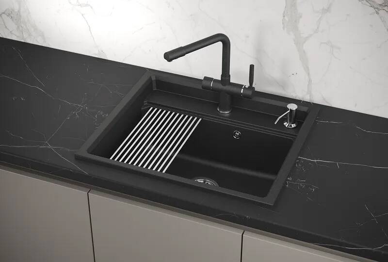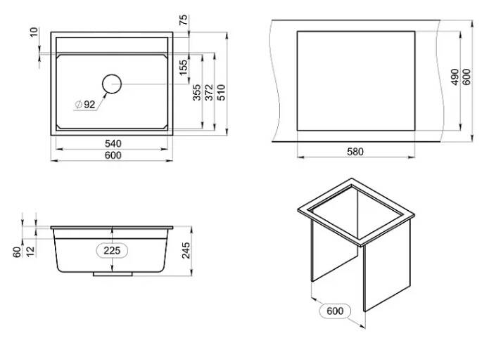 Подходит для установки в шкаф размером 600 мм. Для удобства использования в чаше имеется площадка для установки ролл-мата или разделочной доски. В комплекте: сифон с отводом для бытовой техники, дозатор для жидкого мыла (нержавейка) и ролл-мат.