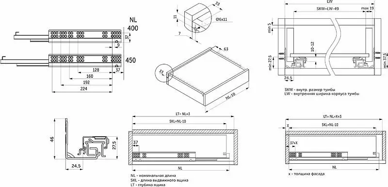 Подходят для мебели с боковыми стенками из плитного материала толщиной до 19 мм.