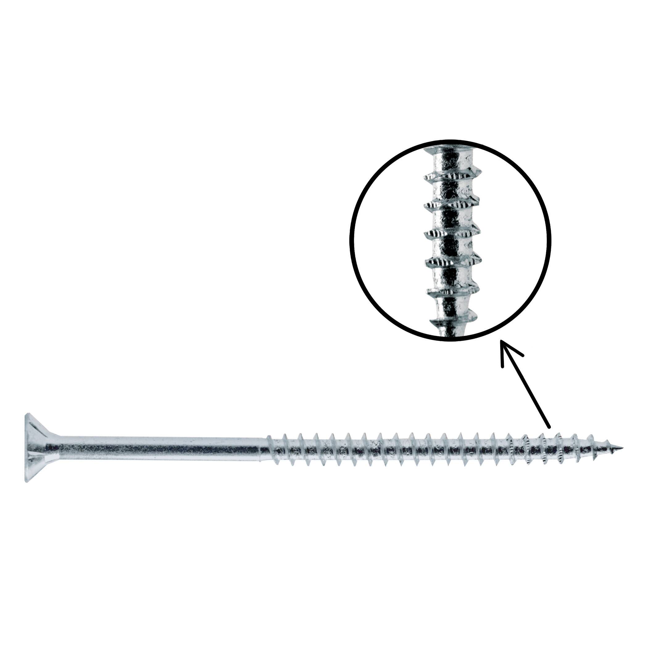 Идеальная посадка – без зазоров и выступов Благодаря шести зенкующим насечкам под головкой шуруп вкручивается в дерево заподлицо, создавая аккуратный, эстетичный вид.
