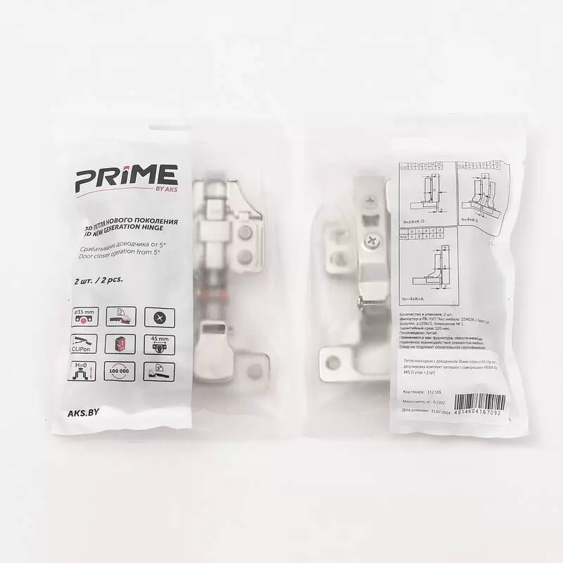 Петля накладная c доводчиком PRIME by AKS 3D — это сочетание надежности, функциональности и эстетики. Созданы в соответствии с международными стандартами для производителей качественной мебели сегмента «средний+».