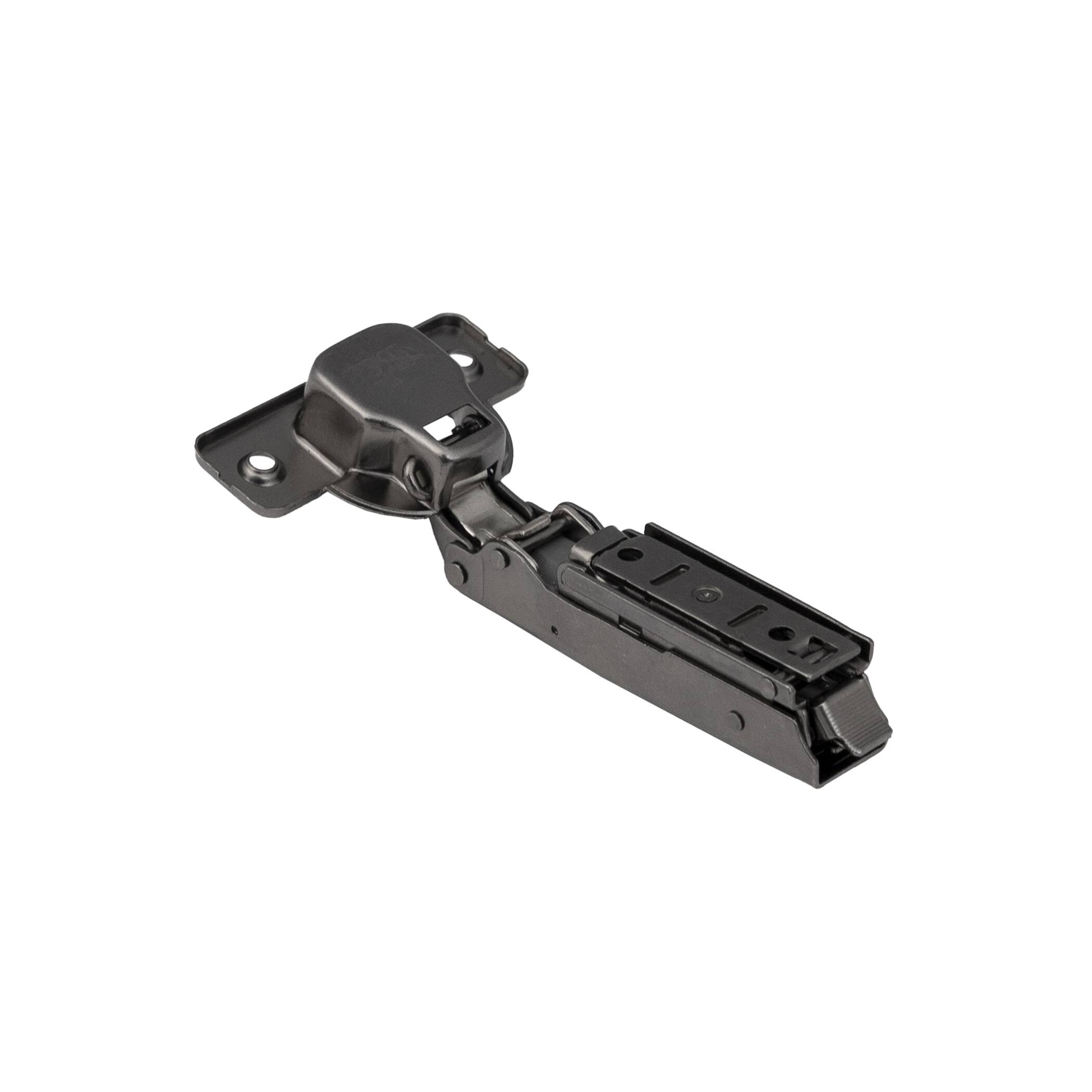 Петля чёрная накладная с доводчиком и системой быстрого монтажа clip on. Имеет современную систему регулировки в трех плоскостях по +/- 2 мм при помощи эксцентриковых винтов в планке и теле петли. Межцентровое расстояние в чашке 45 мм.