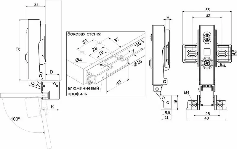 Угол открывания, °:
