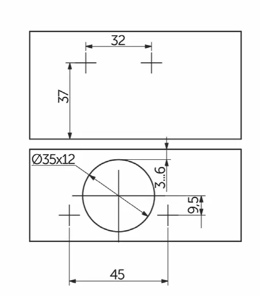 Изготовлена из холоднокатанной стали. Диаметр чашки петли составляет ∅35 мм. Глубина чашки 11,5 мм. Глубина сверления, необходимая для установки, 12 мм.