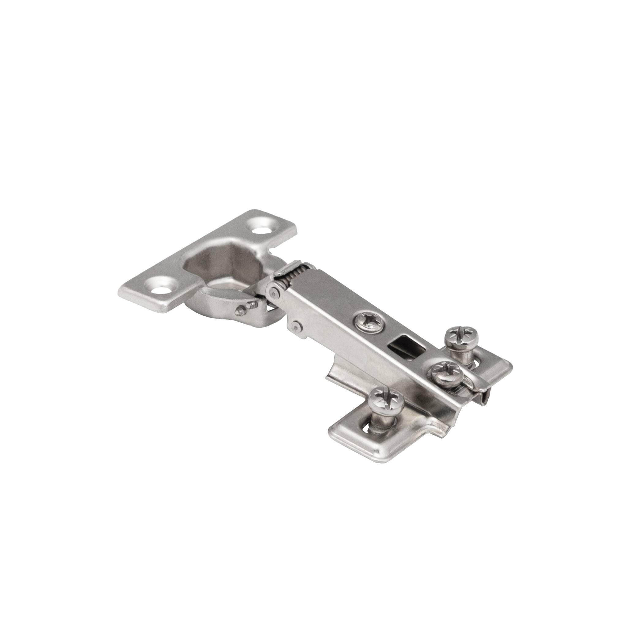 Петля мини накладная 09 выполнена из холоднокатаной стали. Чашка 26 мм. Имеет механизм надвижного монтажа slide on и регулировочный винт с размером по резьбе в 10 мм.