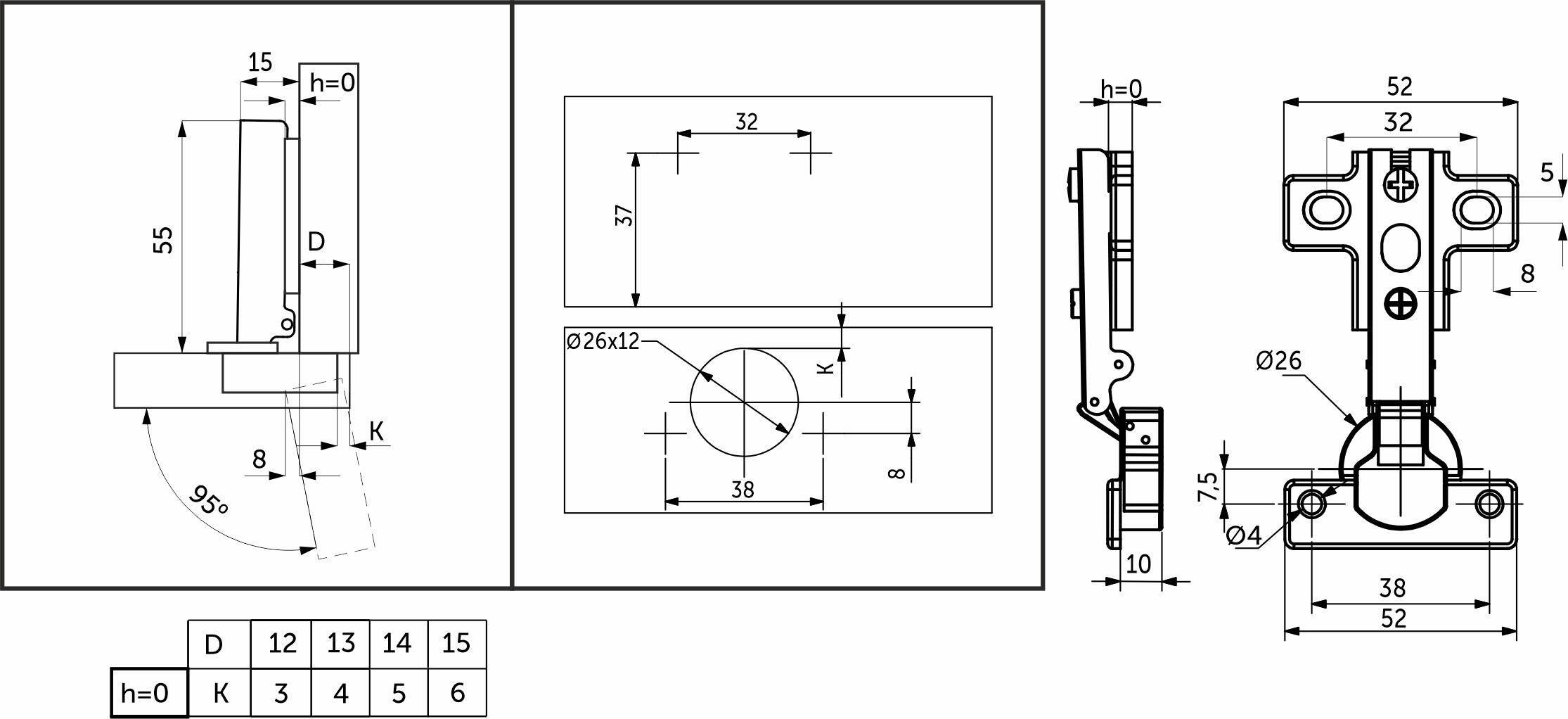 Петля мини накладная 09 выполнена из холоднокатаной стали. Чашка 26 мм. Имеет механизм надвижного монтажа slide on и регулировочный винт с размером по резьбе в 10 мм.
