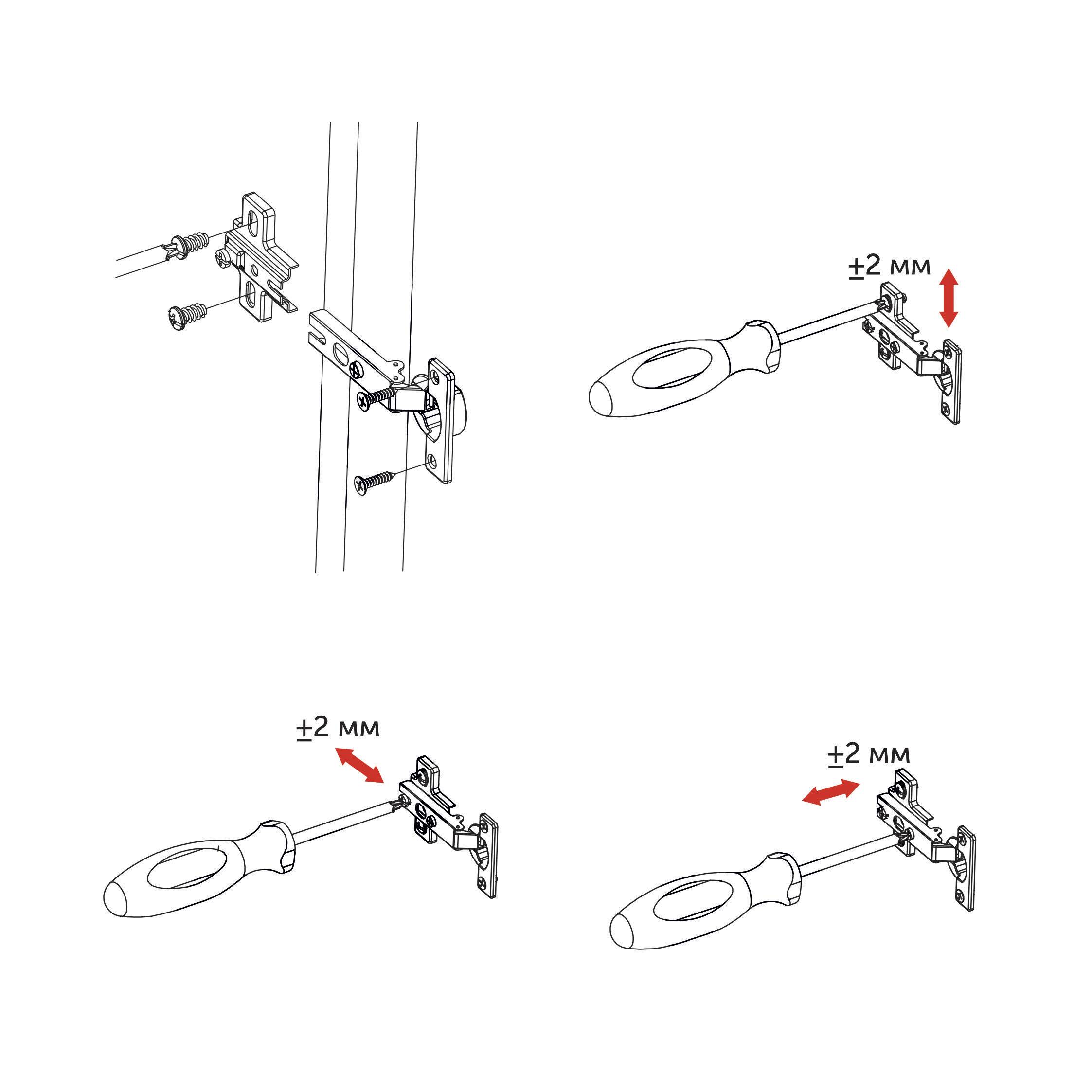 Петля мини накладная 09 предназначена для установки на фасад с перекрытием всех стенок корпуса примыкания к фасаду.