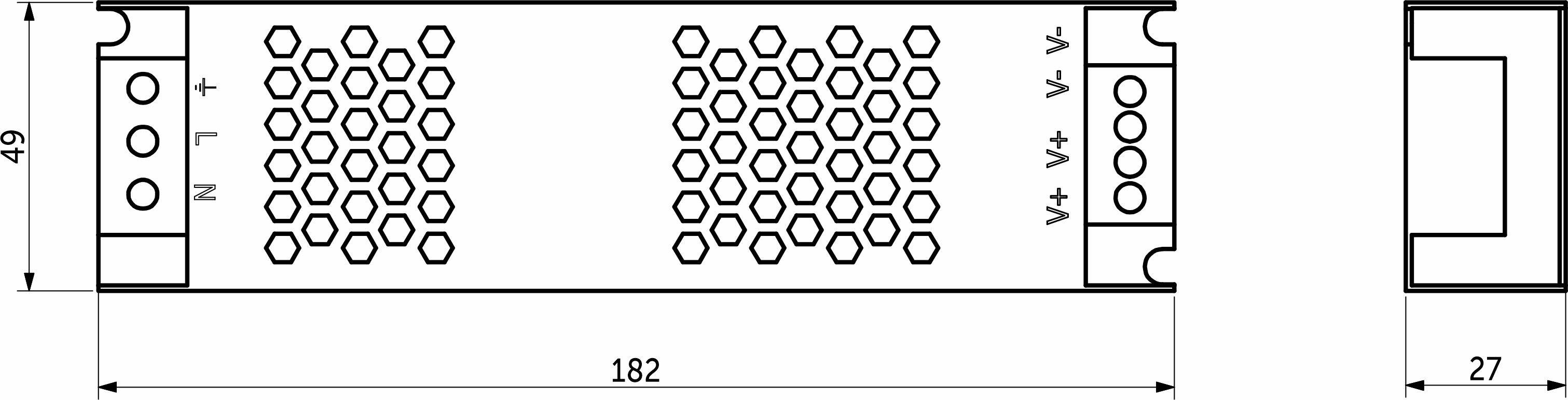 Вх.напряж. 110-220V AC, вых напряж. 24V DC, мощность 100Вт, сила тока 4,17A, степень защиты IP20.