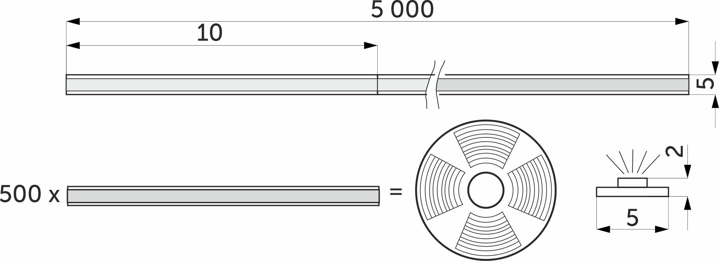 COB лента, количество диодов 400д/м, напряжение 12В, степень защиты IP20, мощность 12W/m, ширина 5 мм, теплый белый (3000K), CRI>90, 1000 Lm, узкая - 5м.