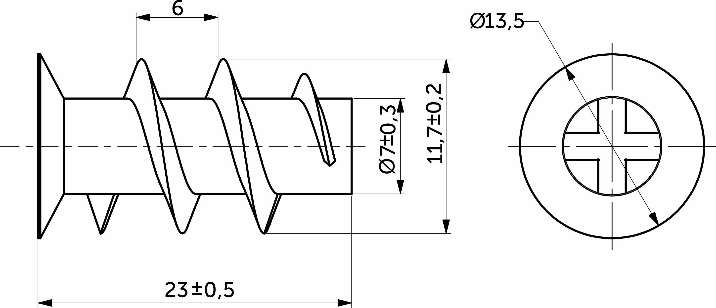 Пластиковый дюбель DRIVA применяется для крепления в гипсокартоне, газобетоне, штукатурке. Предварительное засверливание сверлом D 8мм. Монтаж происходит посредством вворачивания. Шуруп толщиной 4-4,5 мм, длина шурупа 23+L, где L – толщина прикрепляемой поверхности либо величина вылета шурупа над поверхностью.