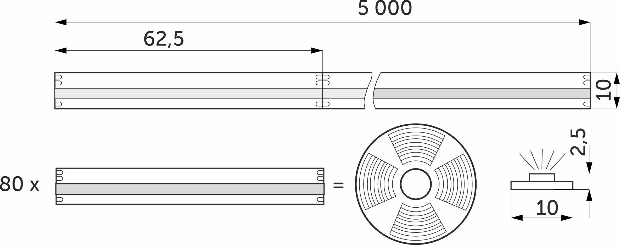 COB RGB SPI лента, количество диодов 576д/м, напряжение 24В, степень защиты IP20, мощность 13W/m, ширина 10мм, цветная - 5м.
