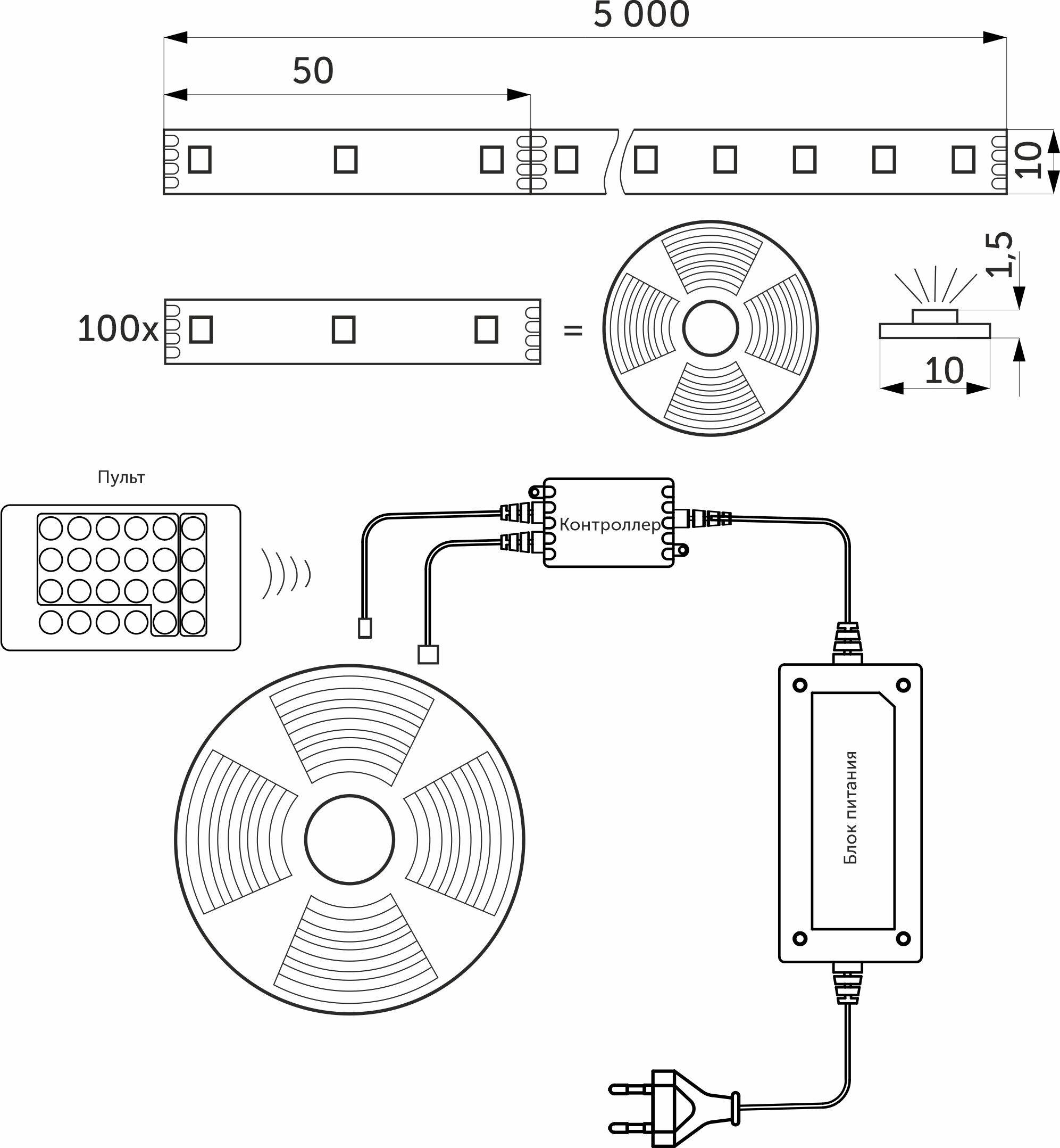 В комплекте так же идет блок питания и контроллер.