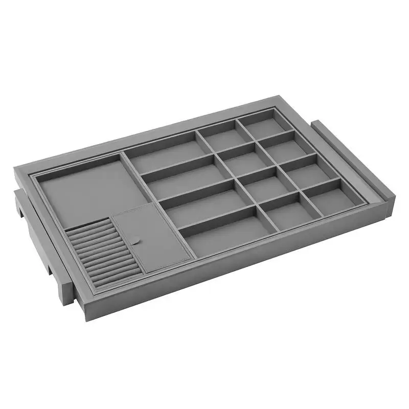 Современные лаконичные выдвижные полки для украшений и аксессуаров на направляющих скрытого монтажа с доводчиком на закрытие. Эргономичны, легко монтируются и регулируются. Для бижутерии, часов, галстуков, ремней, платков.