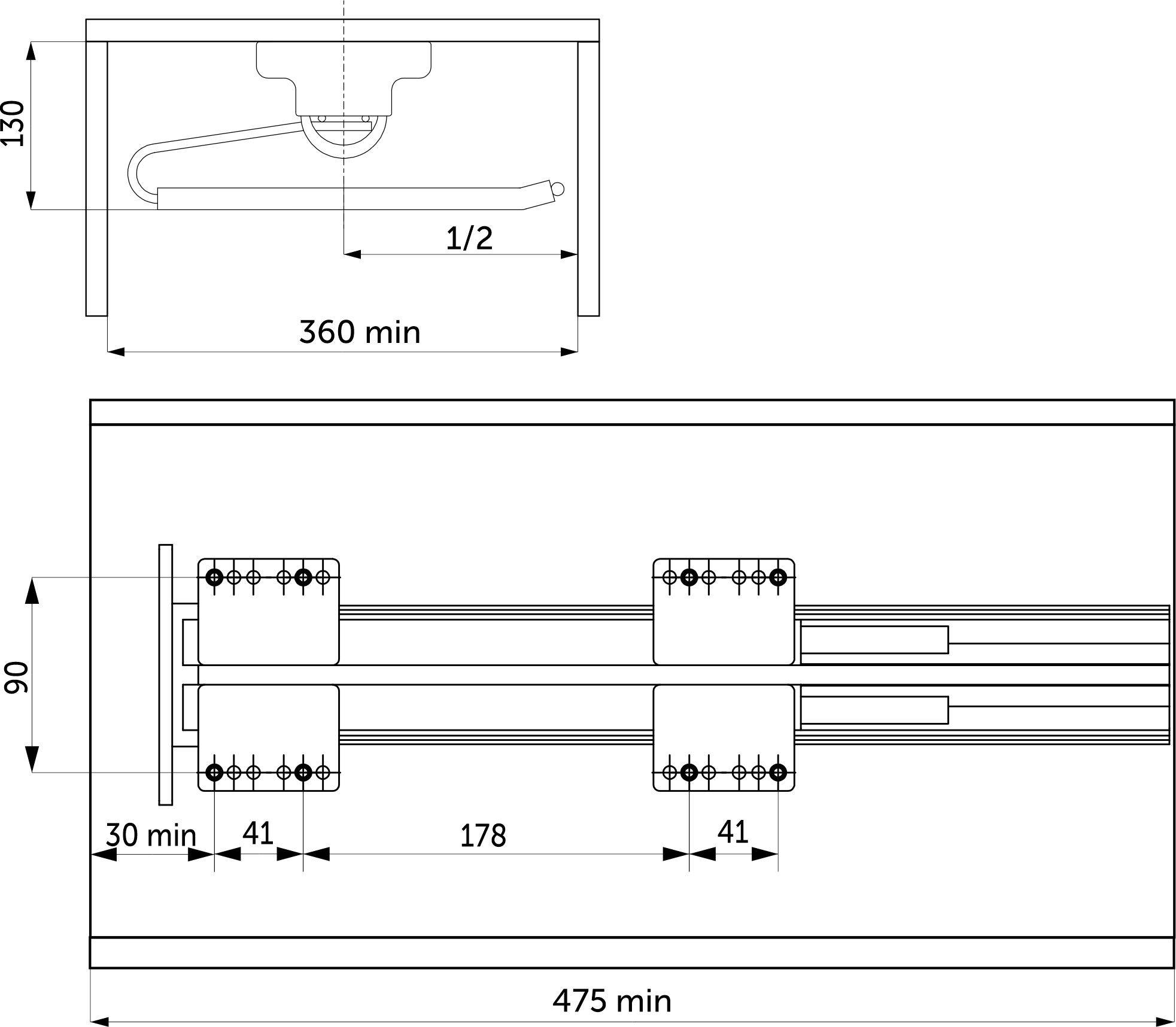 -направляющие: L-450 мм скрытого монтажа полного выдвижения с доводчиком (max нагрузка на направляющие - 25 кг);