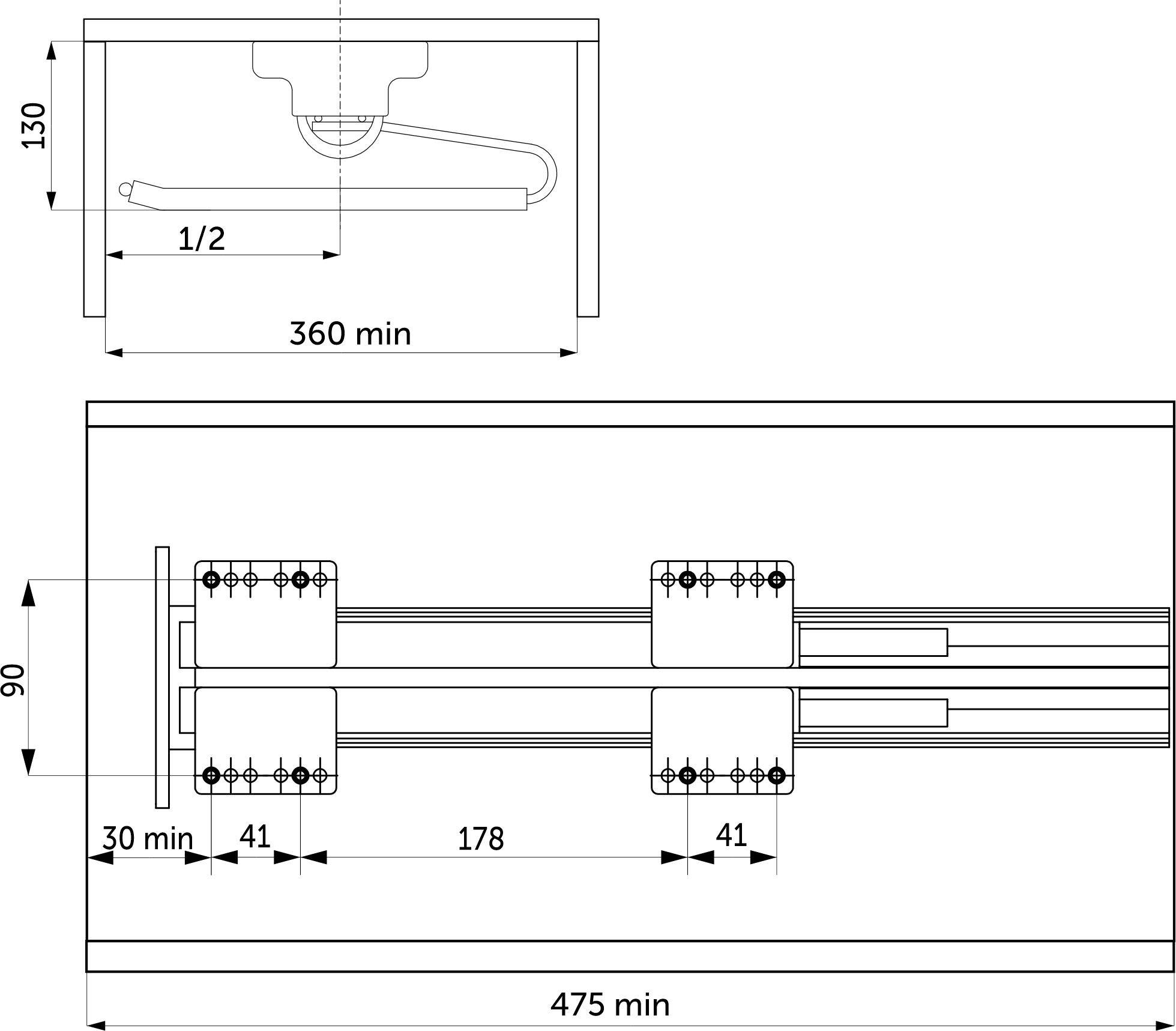 -направляющие: L-450 мм скрытого монтажа полного выдвижения с доводчиком (max нагрузка на направляющие - 25 кг);