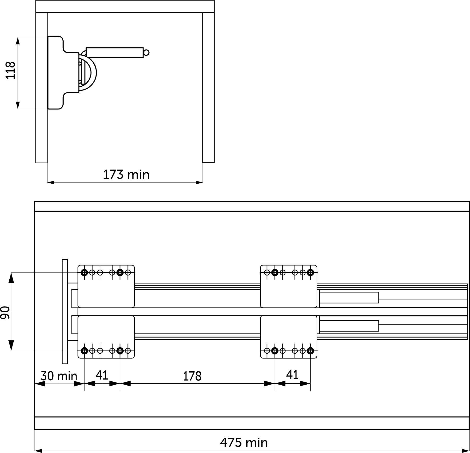 направляющие: L-450 мм скрытого монтажа полного выдвижения с доводчиком (max нагрузка на направляющие - 25 кг);