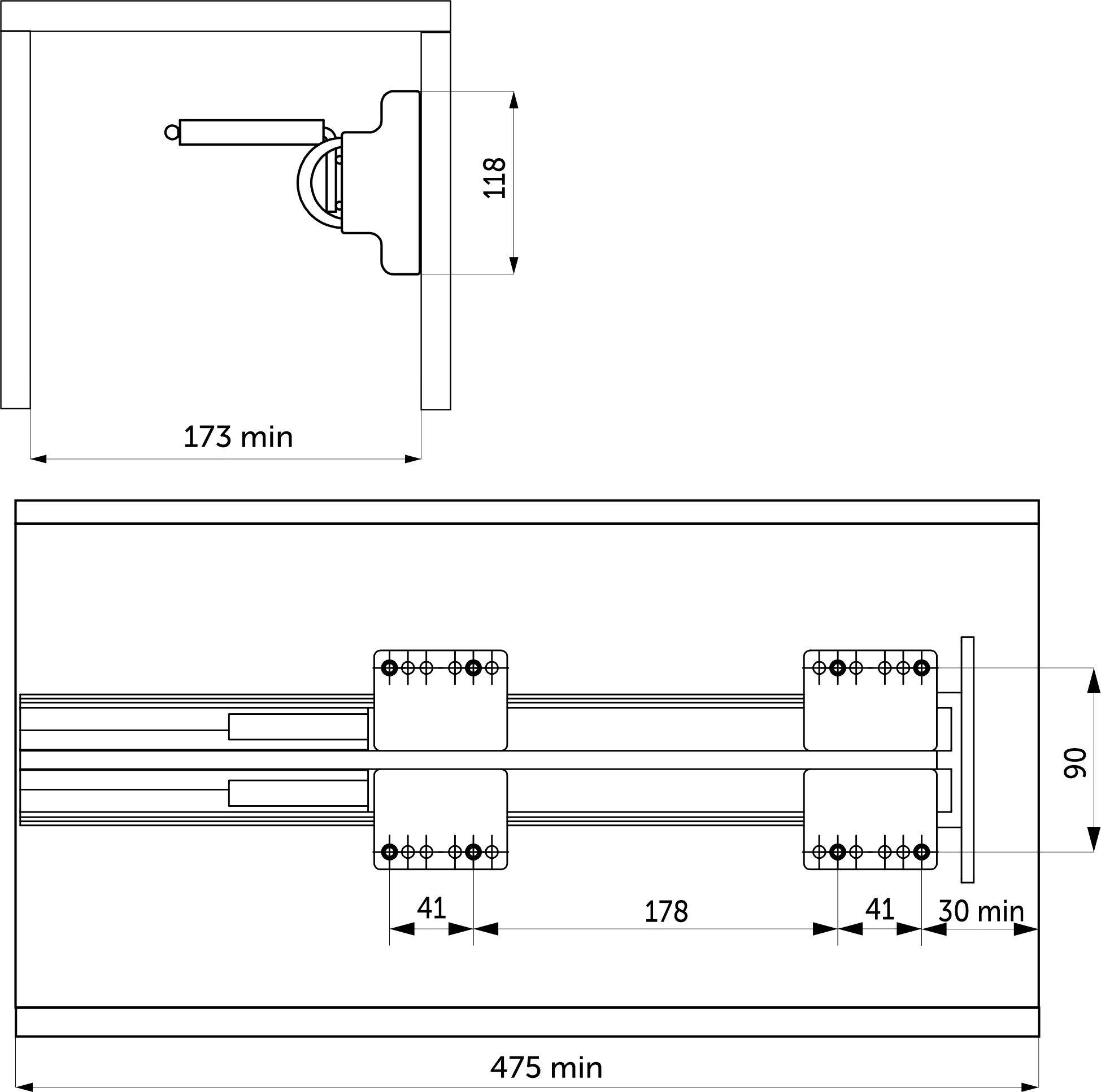 направляющие: L-450 мм скрытого монтажа полного выдвижения с доводчиком (max нагрузка на направляющие - 25 кг);