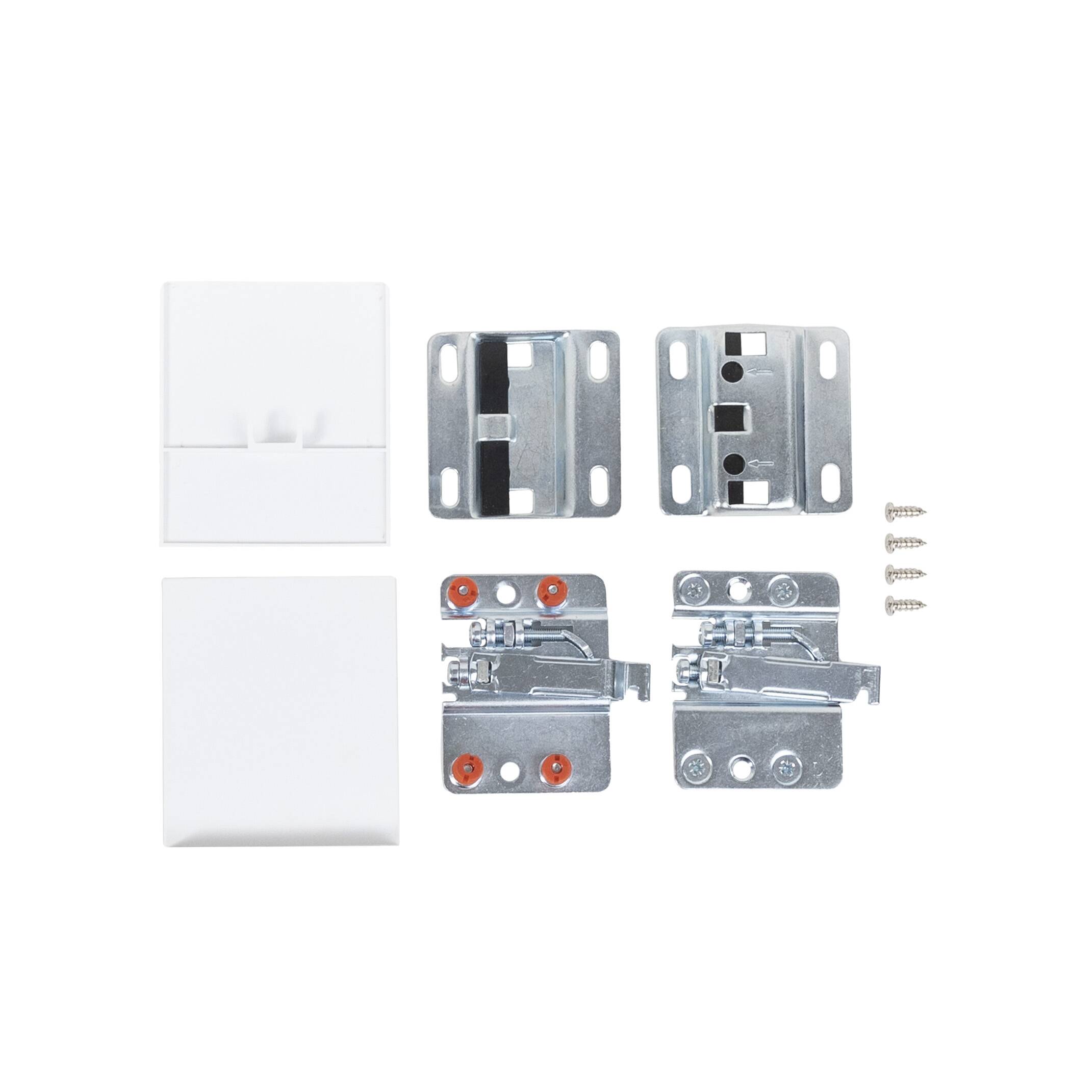 В комплект входят: 2 навеса, 2 монтажные планки, 2 заглушки белого цвета и комплект саморезов для крепления к корпусу ящика.